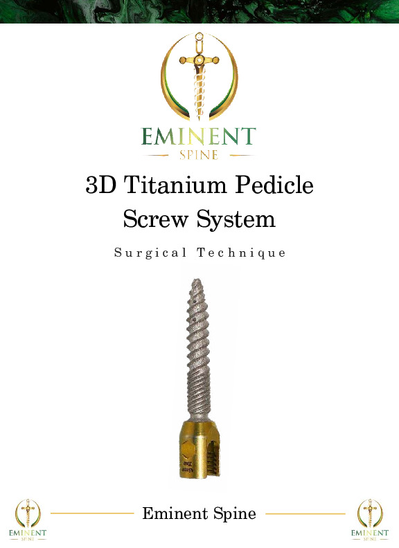 The 3D printed Titanium Pedicle Screw System by Eminent spine is the worlds first FDA approved 3D printed pedicle screw. The screws are cannulated and fenestrated with a cortical-cancellous thread pattern.