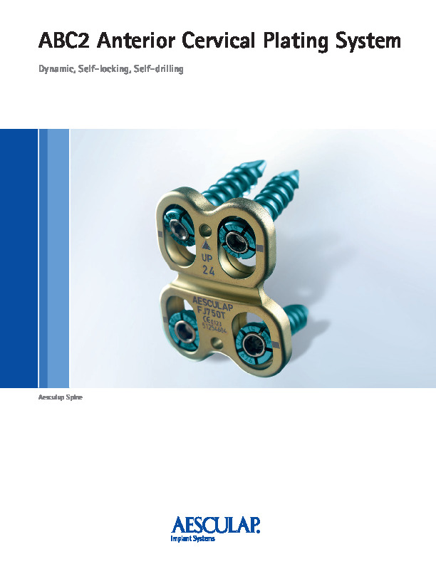 The ABC2 Dynamic Anterior Cervical Plate was originally produced by Aesculap. The plate featured locking screws with dynamic slots to allow for some dynamic translation to make use of Wolfs Law. The system also features extension plates to be connected to the original plate for extension procedures.