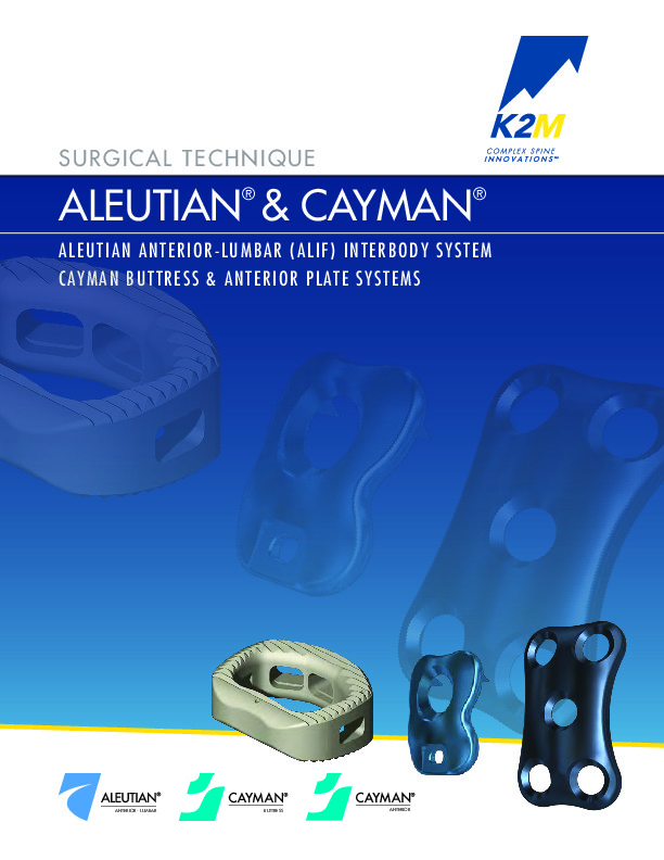 The ALEUTIAN ALIF spacer by K2M Stryker is a PEEK interbody spacer for use in the ALIF procedure.