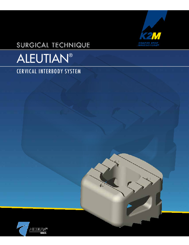 The ALEUTIAN Anterior Cervical Interbody ACDF spacer is an all PEEK interbody by Stryker. It is a standalone cage and intended to be used with supplemental plate fixation.