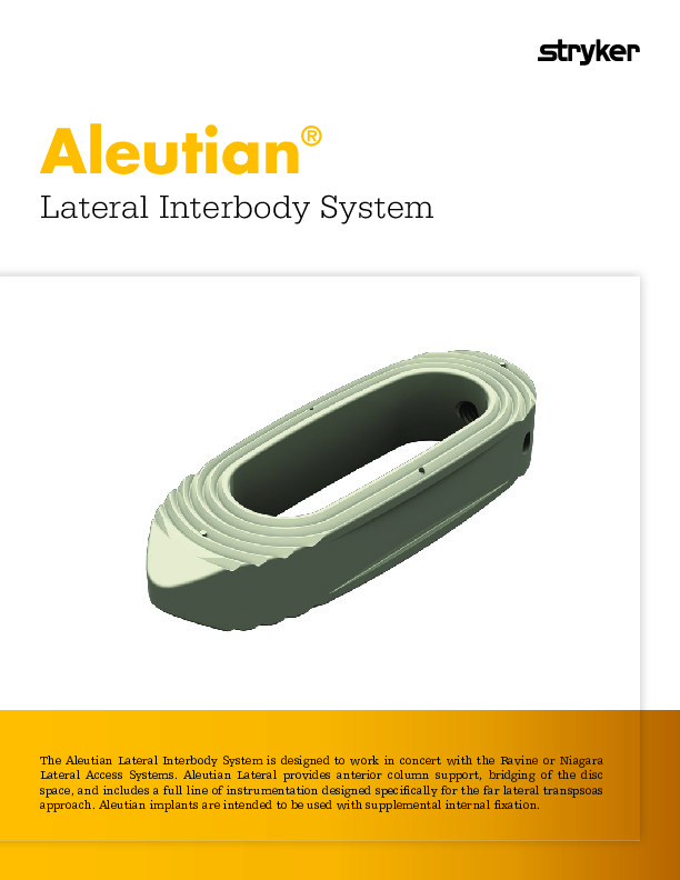 The ALEUTIAN Lateral is a PEEK Interbody spacer for use in the direct lateral retroperitoneal approach. It features radiolucent PEEK polymer, large graft window, and a tapered nose for easier insertion.