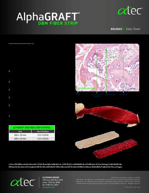 AlphaGRAFT DBM Fibers and strips are composed of demineralized cortical fibers and come as either moldable gift or is pressed into moldable strips. When hydrated with BMA is a good carrier for osteogenic cells.