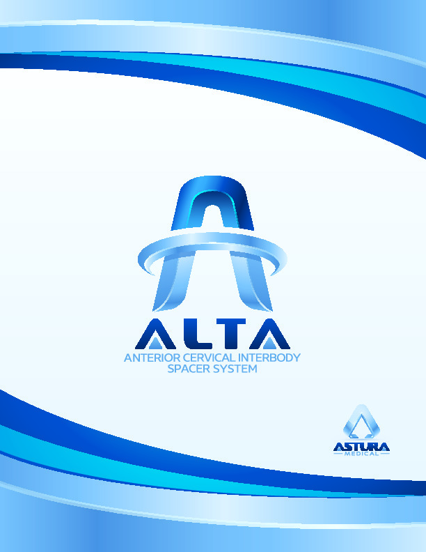 The Alta ACDF Spacer by Astura Medical is a spacer available in 3 material options and 4 footprint options. Comes as cage alone and requires supplemental fixation