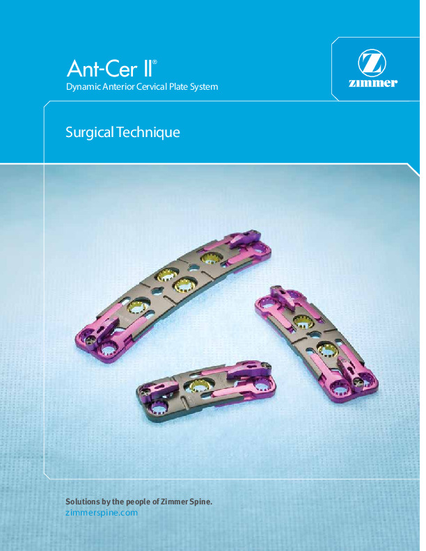 The SC-AcuFix Ant-Cer-II by Zimmer-Biomet is a Dynamic Anterior Cervical plate system intended for use in the ACDF procedure and for use in degenerative, trauma, tumor, deformity. It is single level to 4 level plate
