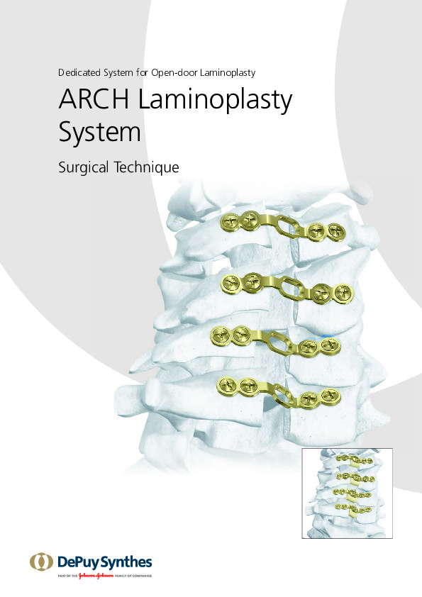 The ARCH Laminoplasty system by DePuty-Synthes is a complete laminoplasty system composed of mini-plate and can be used with or without the option of allograft or PEEK Spacers.