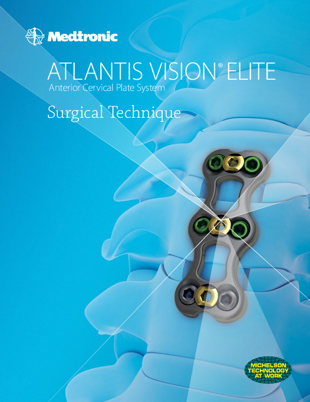 The Atlantis Vision Elite Anterior Cervical plate by Medtronic is a low profile anterior plate for the ACDF procedure and features single level to 5 level plate options with screw locking.