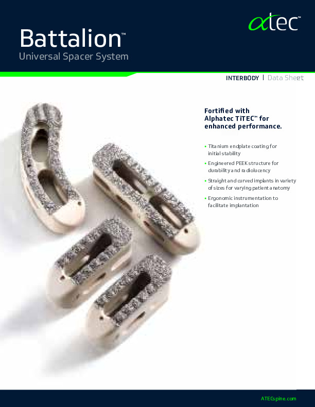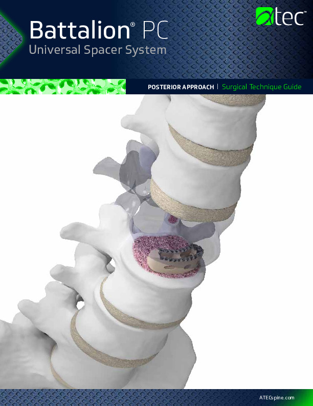 The Battalion -PC is a Curved titanium coated PEEK spacer for use in the TLIF procedure.