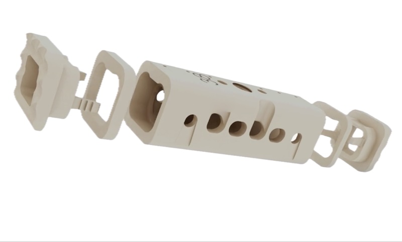 The Boxcar Vertebral Body Replacement system by Omnia Medical is a modular cervical corpectomy spacer composed of PEEK-OPTIMA HA (Hydroxyapatite) enhanced. This incorporated HA within the entire spacer making it more osteoconductive and allows bonding of cellular structures throughout the implant. It has modular endplates that snap together with addition or spacer to increase the height incrementally as well as change the lordosis of the endplates as desired.