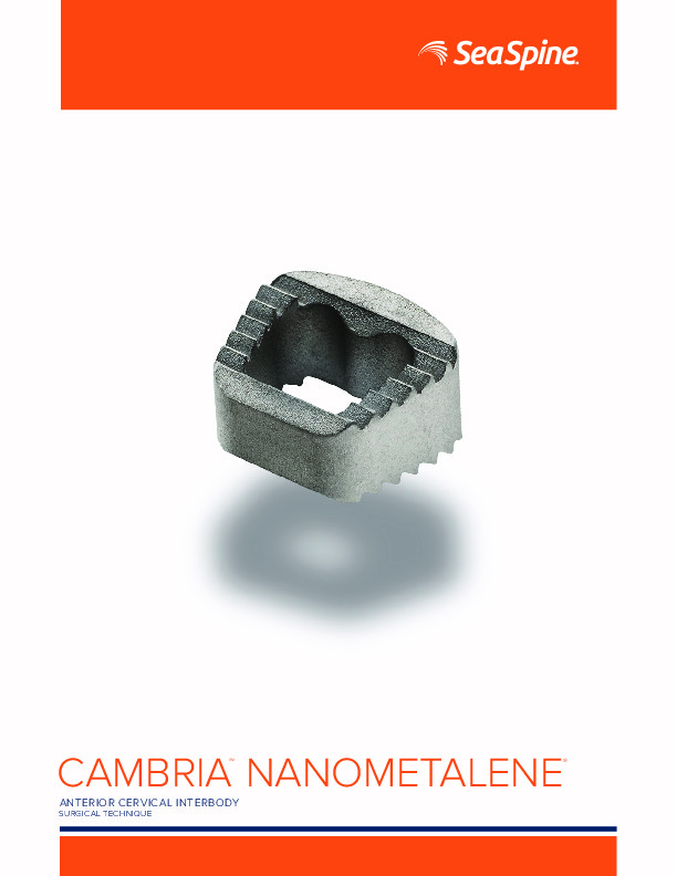 The Cambria NanoMetalene is a titanium coated PEEK ACDF spacer that has a 1-micron thick bonded layer to the PEEK. Comes as cage only, requires supplemental fixation.