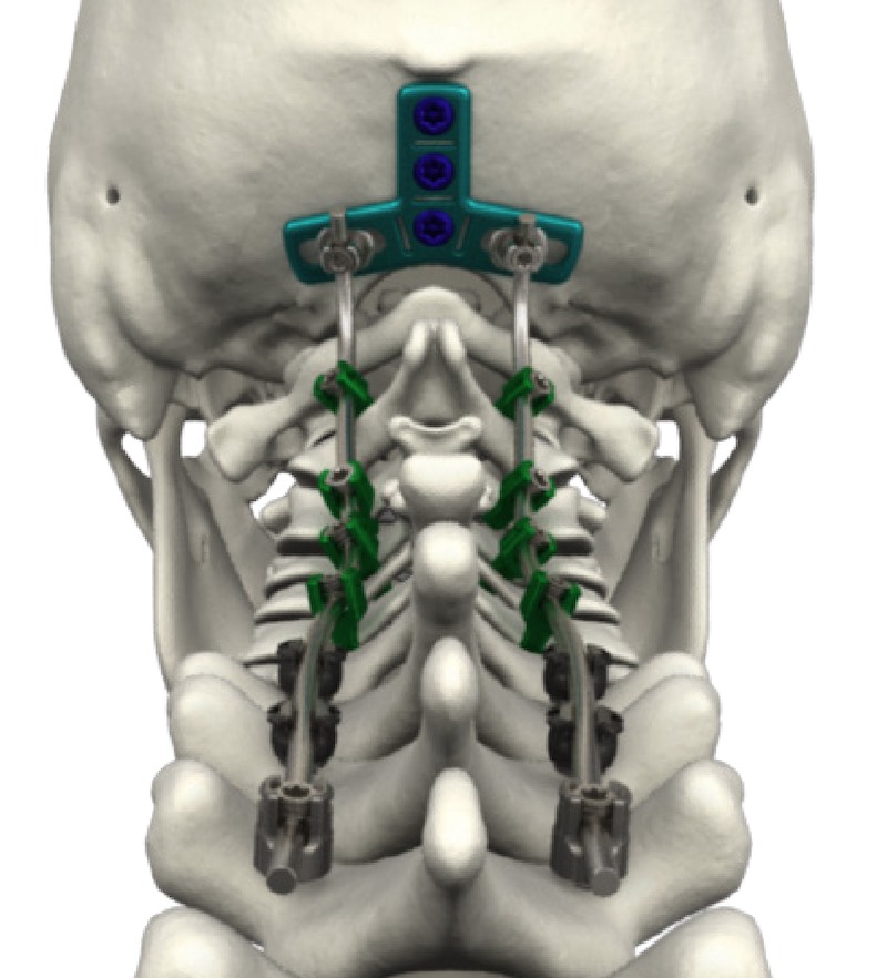 The Caspian Occipital plating system by Stryker-K2M is a posteriorly fixated system that features 3 midline keel screw holes. Available in 3 size options to fit multiple width of constructs.
