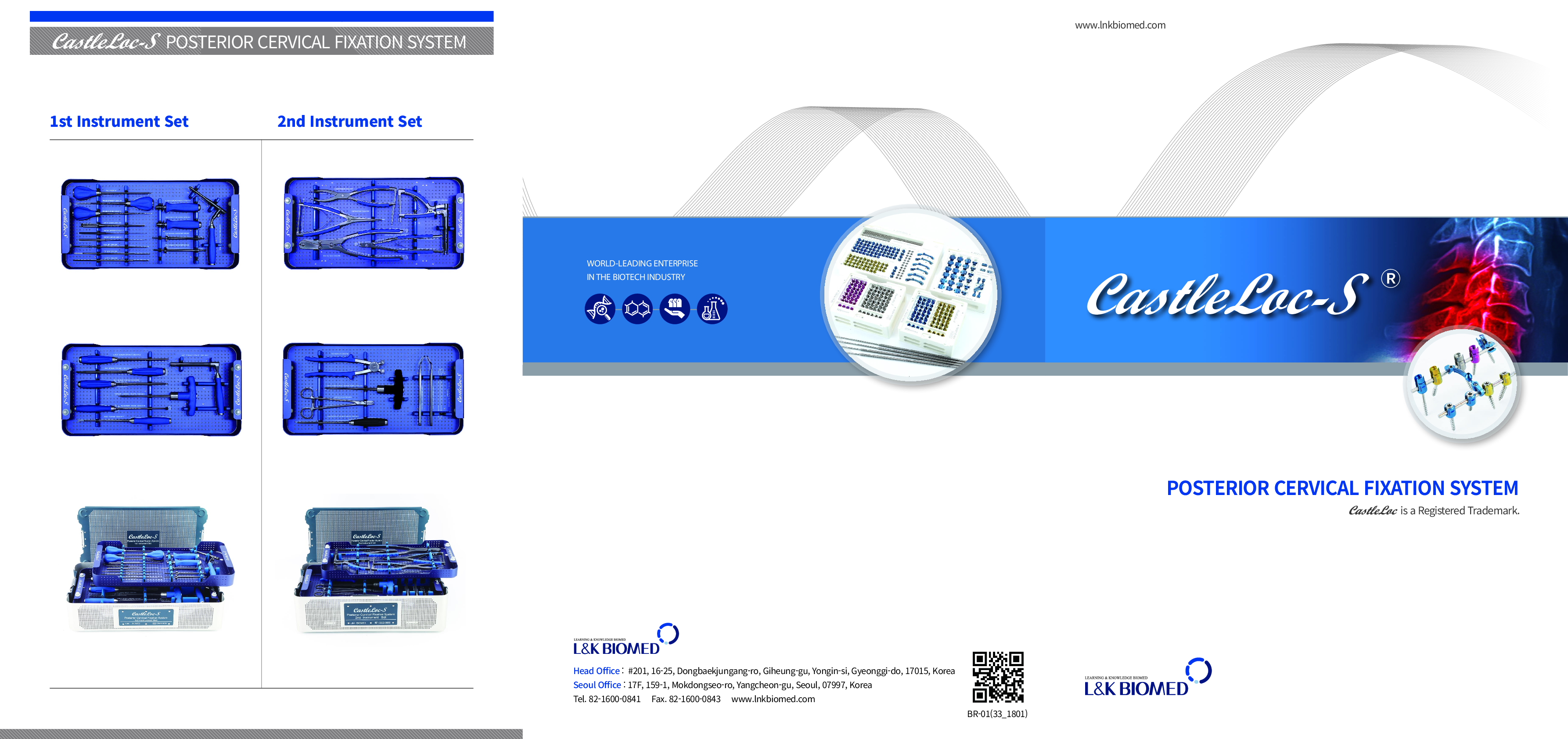 CastleLoc-S by Aegis Meditech is a posterior cervical fixation system designed for fusion of the cervical and upper levels of the thoracic spine. The top-loading posterior cervical screws are approved for use in either pedicle or lateral mass, and available in smooth shank or fully thread screws, and polyaxial and reduction poly with up to 90 degree angulation to give flexibility in construct design. Self-tapping flute centers screw for easy insertion. Transitional rods available for easy cervical to thoracic positioning. The system includes crosslinks, multiple varieties of rod-to-rod connectors, and lateral connectors.