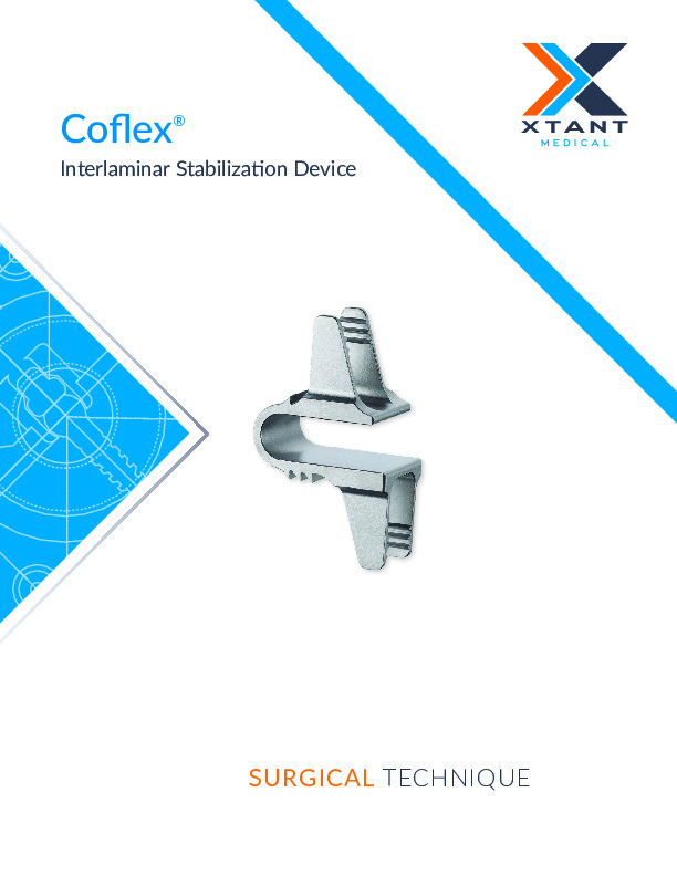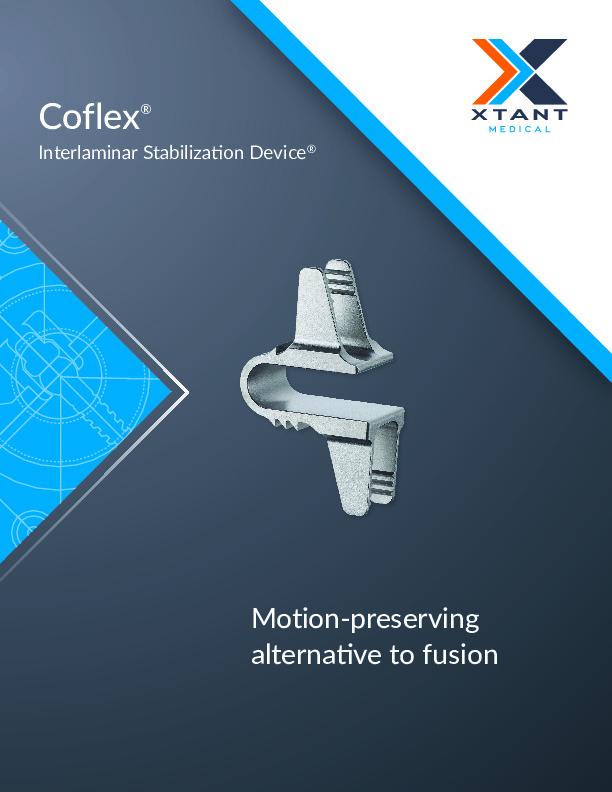 The Coflex Interspinous device by Companion Spine formerly sold by XTANT Medical (previously Surgalign who acquired it from Paradigm Spine) is a dynamic interspinous clamp that inserts into the interspinous space after a decompression to stabilize the vertebrae and provide load sharing in a non-fusion procedure. The wings are crimped onto the spinous process. Available in 5 different height options.