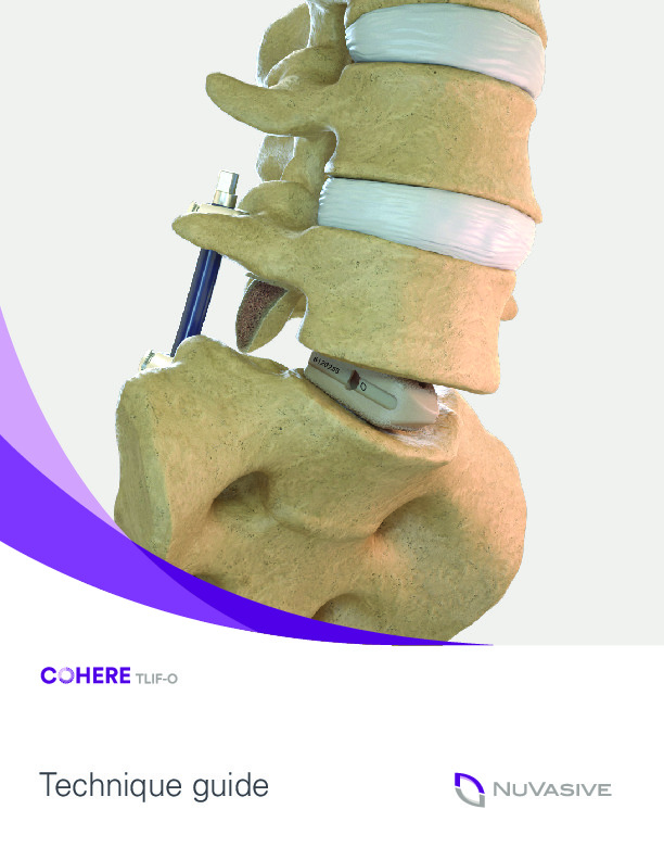 Cohere TLIF-O is a transforaminal lumbar interbody oblique spacer designed for posterior approach, providing lordosis in the oblique plane to maintain coronal alignment while restoring sagittal balance. It is made of porous PEEK to promote bone ingrowth while maintaining the inherent biomechanical and imaging properties of PEEK.