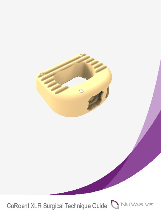 The CoRoent XLR PEEK ALIF spacer is designed for anterior lumbar approach with various footprints for variable patient anatomy, to be completed with a supplemental internal fixation system. The CoRoent XLR Line Extension includes a smaller footprint to address TLIF/PLIF revisions done anteriorly, small patient anatomy, and limited access provided by the access surgeon.