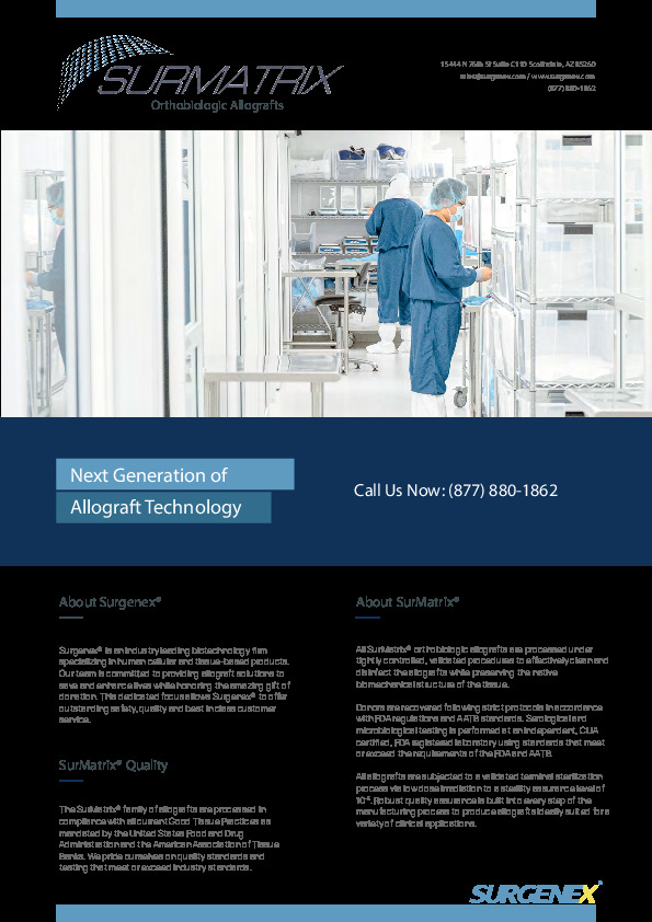 The SurMatrix DBM Cortical Fibers by Surgenex is a demineralized bone matrix of cortical fibers. It comes dehydrated and can be with or without cancellous chips. The DBM fibers can be rehydrated with BMA, blood, PRP, Saline, etc.