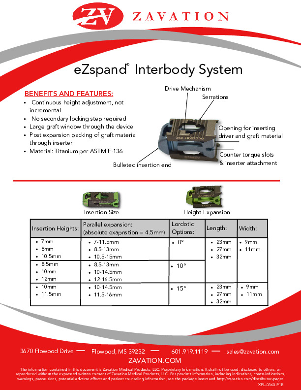 The eZspand Expandable titanium interbody spacer for use in the TLIF and PLIF procudure utilizes a continuous expansion and requires no secondary locking.