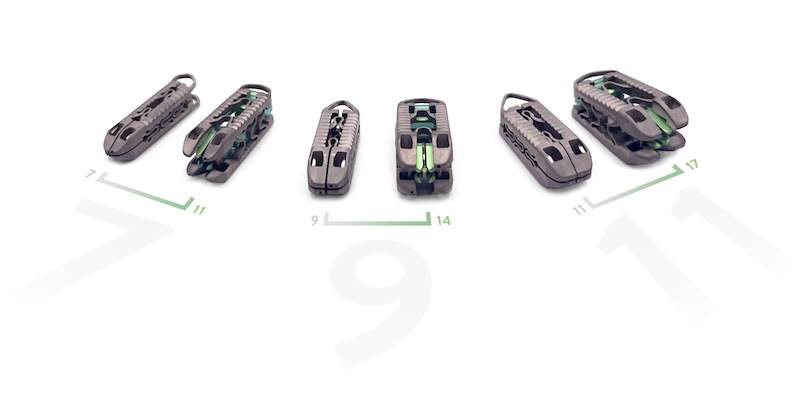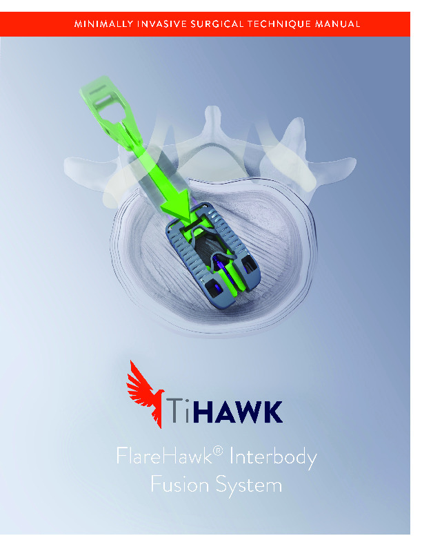The FLAREHAWK & TiHAWK is a Bi-directional expandable spacer for use in the PLIF and TLIF procedure as well as the endoscopic or extraforaminal Kambin's triangle approach. The technology uses a PEEK outer shell that is pushed outwards in both height and width with expansion of the inner titanium drive mechanism. This allows for a minimal footprint insertion size with up to a 55% increase in footprint size after expansion. Useful in endoscopic procedures where minimal footprint required for cage placement or in standard TLIF and PLIF approaches. The cages come in both PEEK outer shell and a titanium bonded coating to the PEEK shell. The FlareHawk7 (represents the width of the non-expanded implant, where 7 is 7mm width, 9 is 9mm width, and 11 is 11mm width). The FlareHawk9 and FlareHawk11 share the same inserter and instruments where the FlareHawk7 uses separate instruments and is more suited for the endoscopic approach.