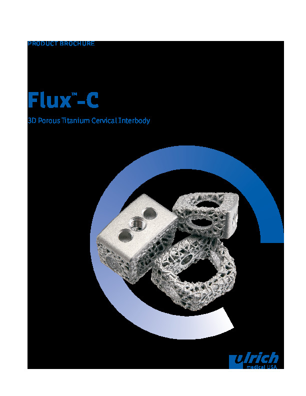 Flux-C is a 3D printed porous titanium anterior cervical interbody fusion device by Ulrich Medical USA designed with a load bearing solid substructure for cortical bone interface and a highly porous surface for bone ingrowth.