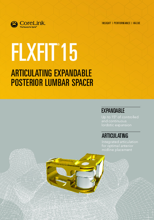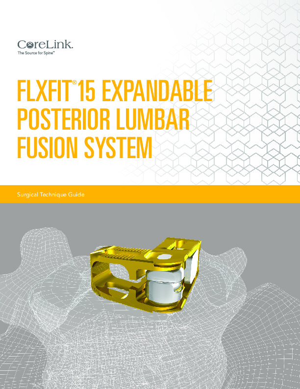 The FLXfit 15 is a novel TLIF implant composed of titanium that is inserted through a traditional TLIF approach and has an articulating footprint to allow for maximal endplate coverage. After articulation, the graft can be expanded up to 15 degrees in the center or up to 4mm in height