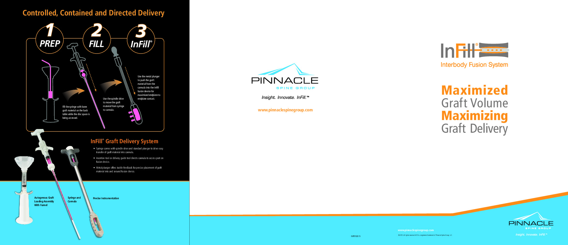 The InFill V2 PEEK lateral lumbar interbody Spacer by Pinnacle Spine Group is a PEEK interbody spacer inteded for implant via the direct lateral retroperitoneal approach. It features a radiolucent material with a variety of implant sizes and lordosis options and includes the proprietary InFill graft delivery to maximize amount of graft material into the spacer.