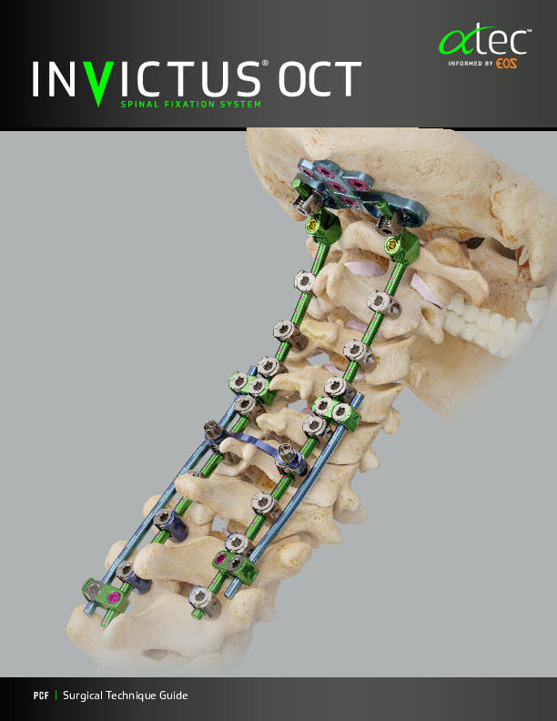 The Invictus OCT is a comprehensive occpito-cervico-thoracic fusion from occiput to T3. Screw options include:
