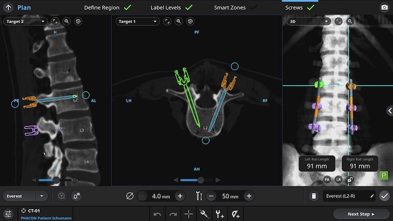 The Mako 4 surgical robotic arm is the newest iteration of the surgical navigated robot that brings with it the integration of Mako Spine. The platform integrates with the Stryker Q Guidance stereotactic navigation system. The automated system provides haptic feedback when drilling and placing screws along with an integrated easy to use surgeon interface for screw planning and navigation. The Mako allows manual movement of the robotic arm to positions that are better for patient-specific workflow.