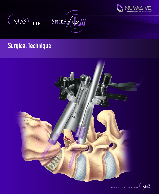 The MAS TLIF with SpheRx DBR III Modular Integrated System combines the MaXcess MAS TLIF Access system, SpheRx DBR III Modular Pedicle Screw system, NVM5 Nerve Monitoring system, and CoRoent interbody implants, to provide a seamless solution that is designed to deliver safe, reproducible MAS TLIF surgery.