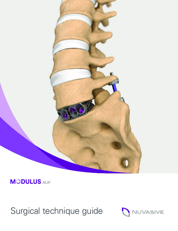 Modulus ALIF is a 3D printed titanium anterior lumbar interbody spacer designed for anterior column support that can be utilized for both XALIF and Supine ALIF approaches, with a zero-step locking mechanism that provides tactile and visual confirmation.