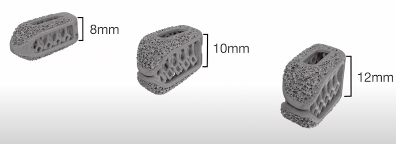 Fully porous 3D printed titanium implant designed to provide a favorable environment for bone in-growth for enhanced osseointegration, allowing for both strength and radiolucency.