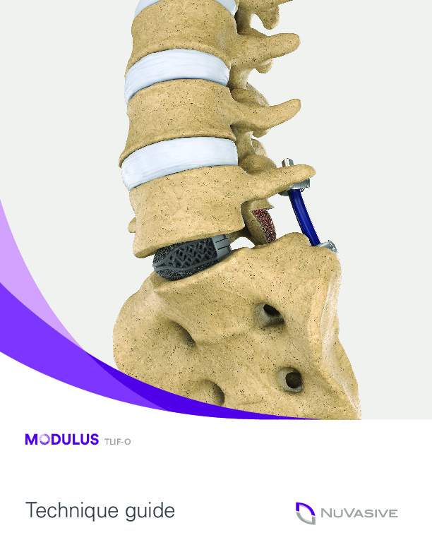 Modulus TLIF-O is a transforaminal lumbar interbody spacer, with an oblique lordotic profile to maintain coronal alignment and bulleted nose for insert and rotate or impacted technique.