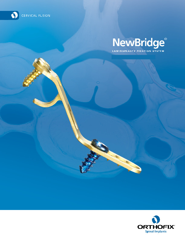 The NewBridge Laminoplasty Fixation system by SeaSpine Orthofix is a laminoplasty plate designed for the expansion of the posterior cervical spine for treatment of degenerative spinal stenosis. Features multiple size and width of plate options. Composed of titanium with self drilling screws.
