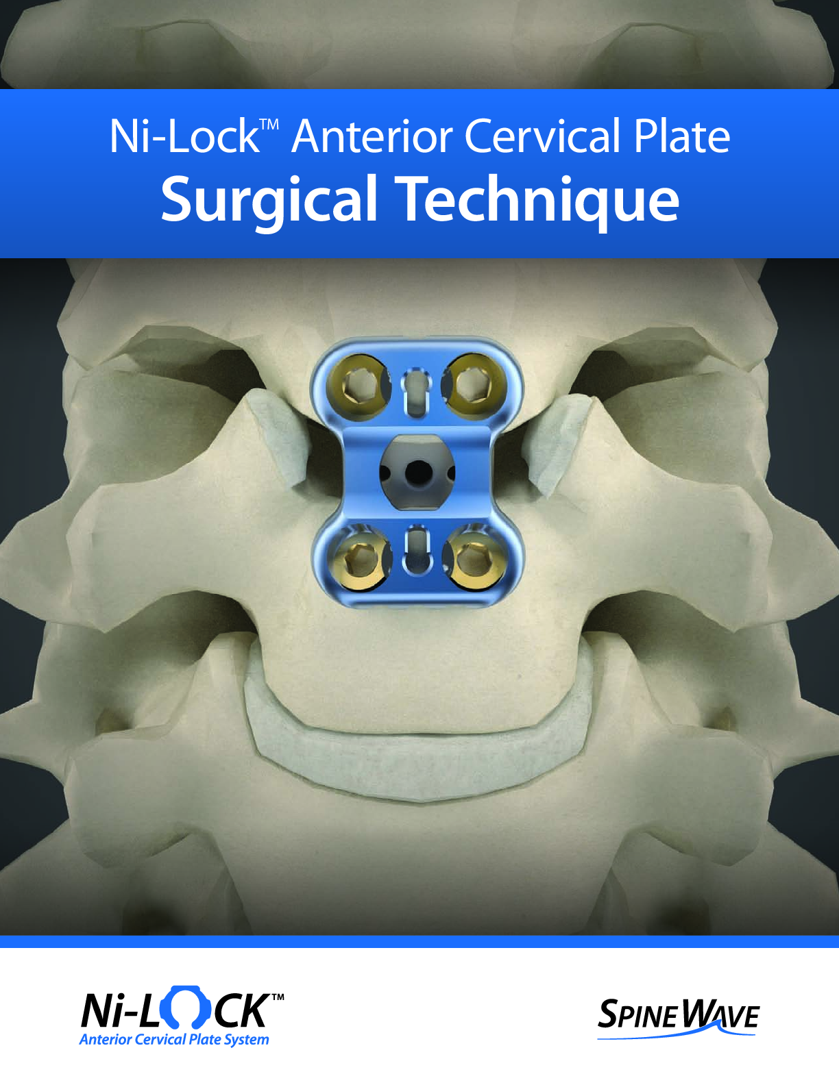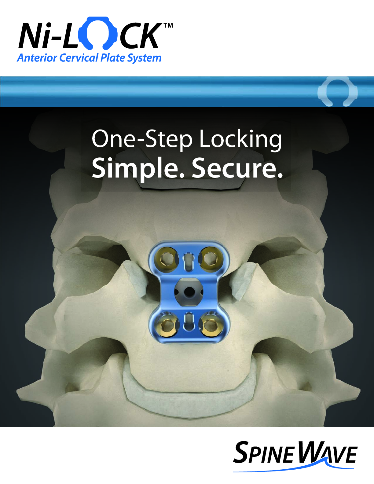 Ni-Lock ACP by Spine Wave is a titanium anterior cervical plate that offers a one-step locking mechanism with a built in nitinol retention clip. Once the screw has full purchase into the bone and plate, the clip automatically springs over the top of the screw head to prevent back-out. The plate also features large graft windows and scalloped sides to enable greater visualization of the anatomy. Screws are self-drilling, self-tapping, available in both fixed and variable angles.