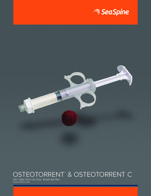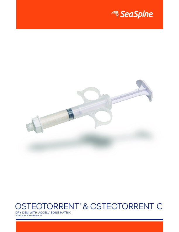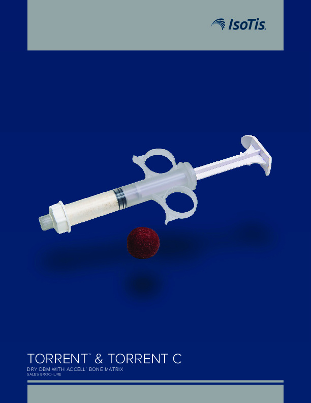 The OsteoTorrent and OsteoTorrent C are composed of Demineralized Bone Matrix (DBM) and Access Bone Matrix (Deminderalized porous cancellous bone). The OsteoTorrent C containes the DBM and ABM but combines cancellous bone as well. Comes as dried DBM allowing the user to rehydrate with saline, blood, or BMA.
