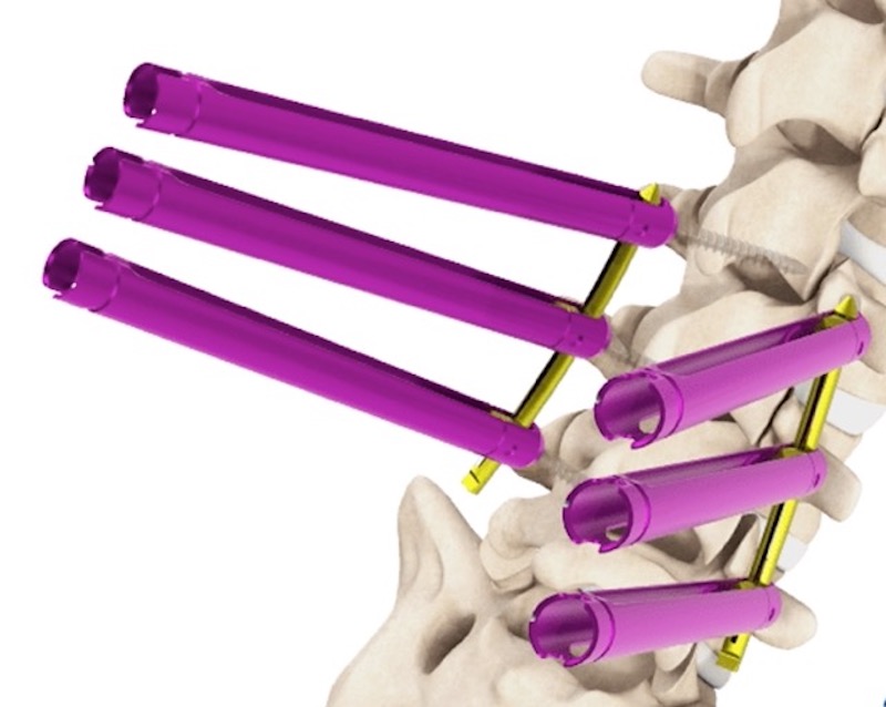 The Palladian[MAX] MIS by NeuroStructures/NuGen is a percutaneous spinal screw system designed to provide a quick and simple streamlined minimally invasive approach for posterior thoracolumbar fixation. It allows for percutaneous compression and distraction, as well as external and internal reduction options. The rod measuring gage and the wide range of pre-bend MIS rods enable effortless percutaneous multilevel rod placement.