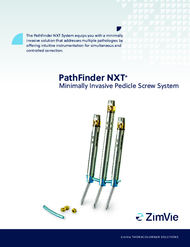The PathFinder NXT was originally produced by Zimmer-Biomet now with Highridge Medical is a MIS Percutanous Pedicle screw fixation system. IT features a cannulated polyaxial screw head with reduction towers that affix to the tulip head.