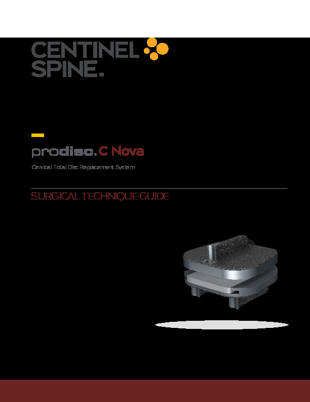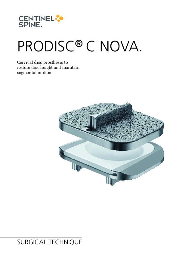The Prodisc C Nova by Centinel Spine is a cervical artificial disc arthroplasty for use in the C3-7 subaxial spine. The disc differs from the other Prodisc C options in that it contains a tri-keel design with a single small keep on the superior endplate and two keel on the inferior endplate for optimal stabilization.