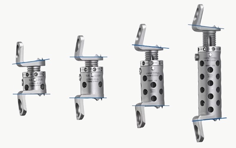 ADDplus by Ulrich Medical USA is a titanium alloy expandable vertebral body replacement implant used for surgical reconstruction of defects of the anterior thoracolumbar spine T1-L5. It is designed with integrated low profile superior and inferior plates for increased stability, and anchored with unique osmium screw technology to provide optimal stabilization. The distal wings of the screw expand 0.7 mm to improve bone purchase and stability once the pin is inserted. Continuous frictionless expansion in situ uses gear driven technology, allowing for easy placement and bridging of the defect. Intended for use with supplemental fixation.