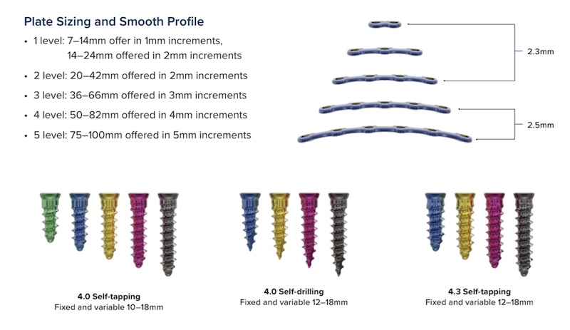 The Admiral ACP Anterior Cervical Plating system is a thin profile ACDF plate that covers single level to 5 levels. Comes as 2.3mm thick in the one and two level plates and the remainder at 2.5mm thick. Torx screw has integrated screw blocking to prevent blackout.