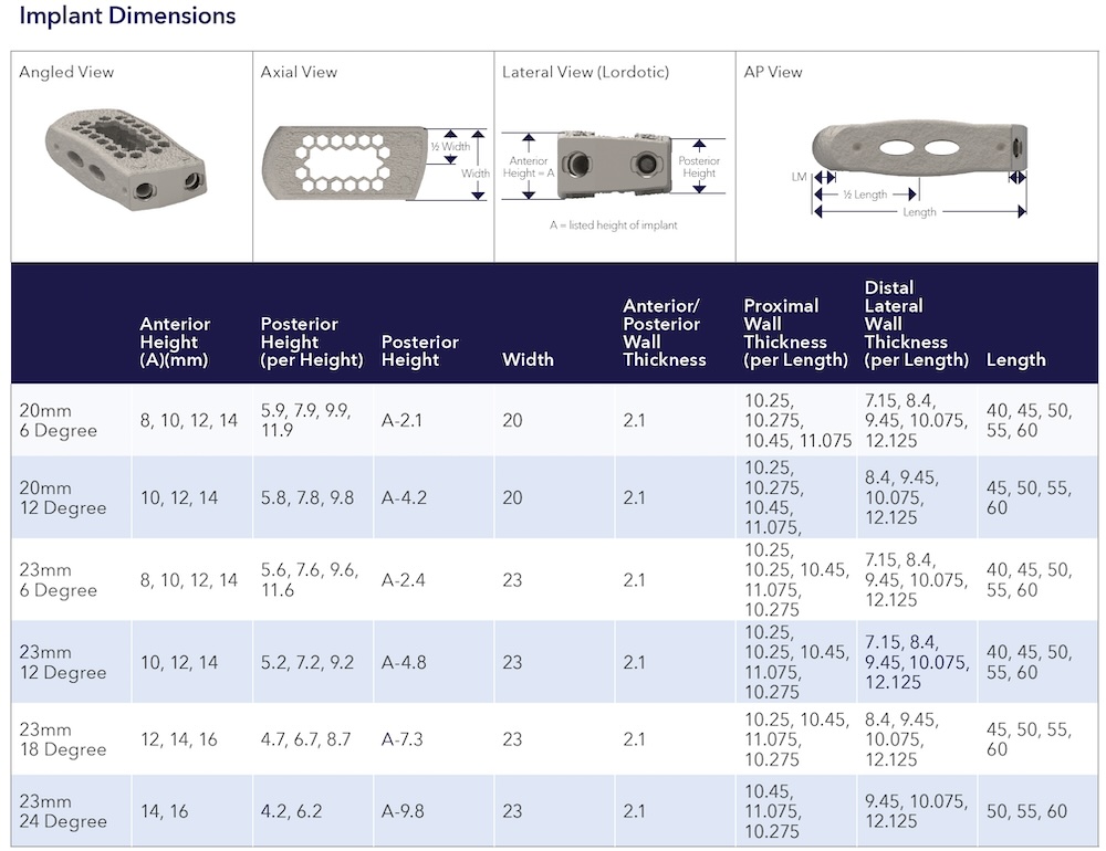 Lateral Implant Width: 18mm , 23mm
