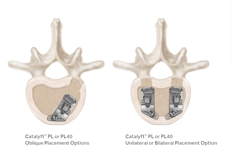 The Catalyft PL and Catalyft PL40 are two footprints of an expandable lumbar interbody spacer. The spacer is a titanium spacer for use in the PLIF and TLIF procedure. The PL40 has 40% more surface area along the anterior rim for weight distribution.