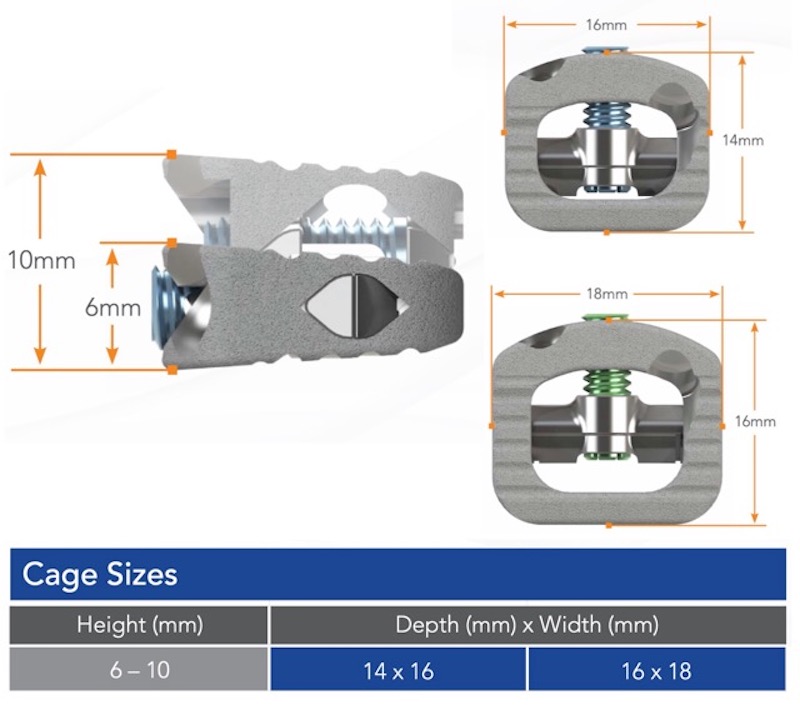 Cavetto-SA EX is a standalone expandable zero-profile ACDF spacer made of titanium alloy with 3D printed textured titanium endplates. In situ parallel expansion allows for insertion at a reduced height which minimizes impaction and preserves endplate integrity, and 3D printed textured titanium endplates promote immediate mechanical fixation and progressive bony ingrowth.