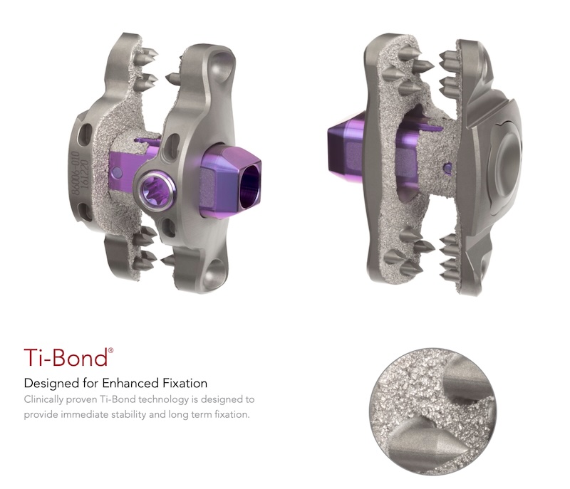 The Clutch Posterior Fixation System by Spinal Elements is an interspinous process fixation clamp for use as an alternative to pedicle screw fixation. It features Active Compression Technology (ACT) to maintain active compression agains the bone using a spring-activated mechanism. In addition, it features a porous titanium coating Ti-Bond, which increases bony ingrowth