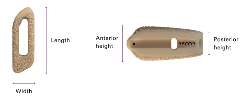 Cohere TLIF-O is a transforaminal lumbar interbody oblique spacer designed for posterior approach, providing lordosis in the oblique plane to maintain coronal alignment while restoring sagittal balance. It is made of porous PEEK to promote bone ingrowth while maintaining the inherent biomechanical and imaging properties of PEEK.