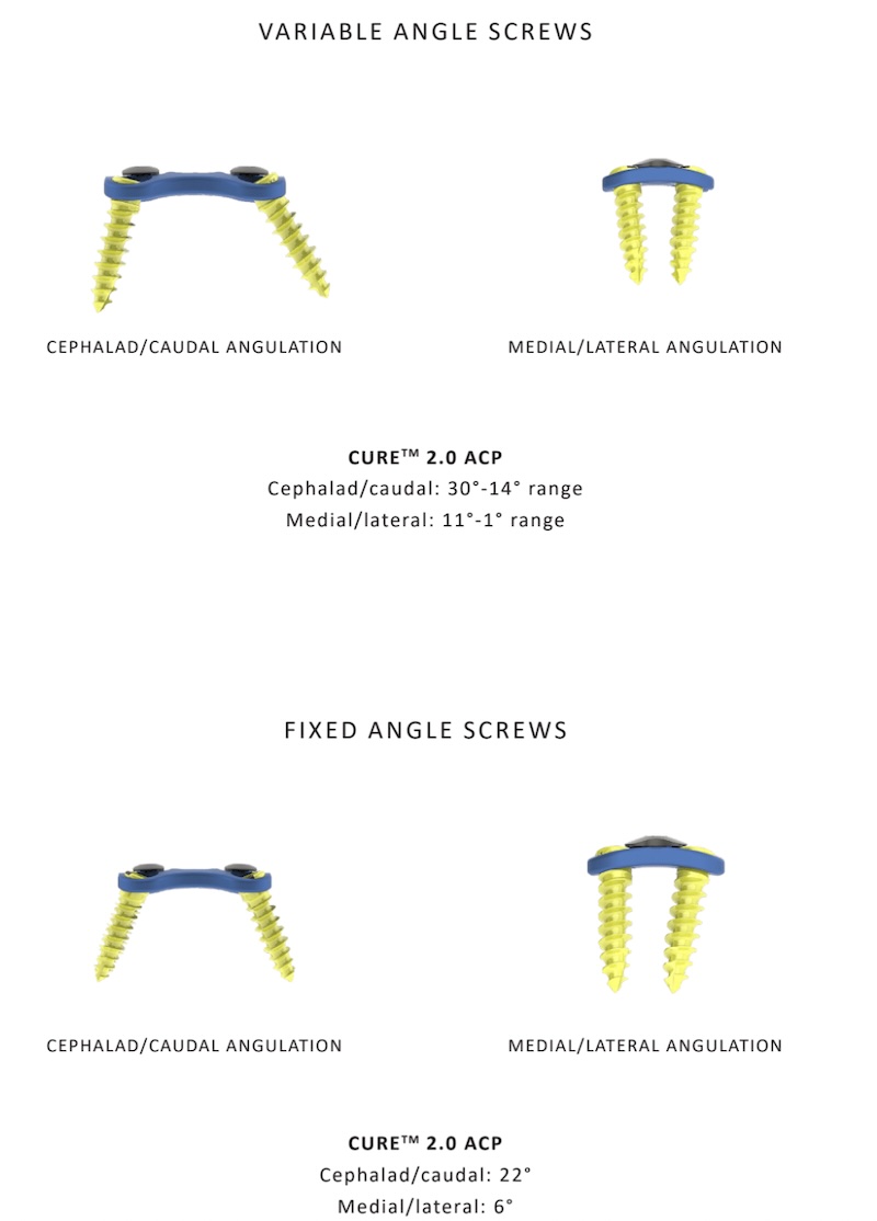 The Cure 2.0 ACP by Spineart is a titanium anterior cervival plate system for use in the ACDF procedure. The Cure 2.0 ACP is a 2mm titanium plate with 1 to 4 level plate options and features a rotating locking screw cam.