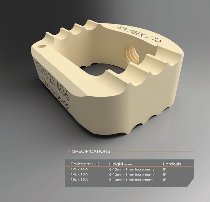 The CxHA ACDF spacer by Innovasis is a HA (Hydroxyapatite) integrated PEEK spacer where the HA is available throughout the graft making it available for all fusion surfaced of the implant. It is a cage alone requiring supplemental fixation.