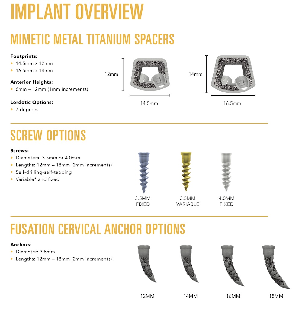 The F3D-C2 Stand alone ACDF spacer with Fustian Anchor technology is composed of a 3D printed titanium spacer and utilizes flexible screw or 3D printed titanium Fustian Anchor.