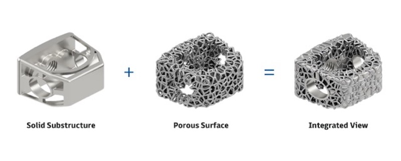Flux-C is a 3D printed porous titanium anterior cervical interbody fusion device by Ulrich Medical USA designed with a load bearing solid substructure for cortical bone interface and a highly porous surface for bone ingrowth.