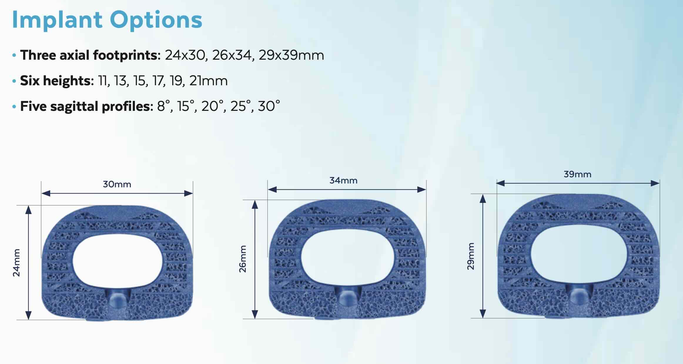 The HEDRON IA is a 3D printed titanium ALIF spacer with integrated screw or anchor holes for fixation.