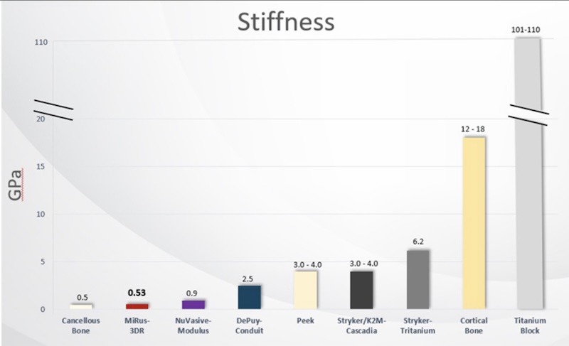 The HYPERION 3DR TLIF by MiRus Medical is a 3D printed titanium curved spacer for use in the TLIF procedure. It features a 3D Pseudo Randomized Stochastic Titanium Lattice to create a varied macro-architecture similar to that of cancellous bone while simultaneously decreasing the density of the spacer to limit the imaging artifact and creating a modulus similar to that of cancellous bone.
