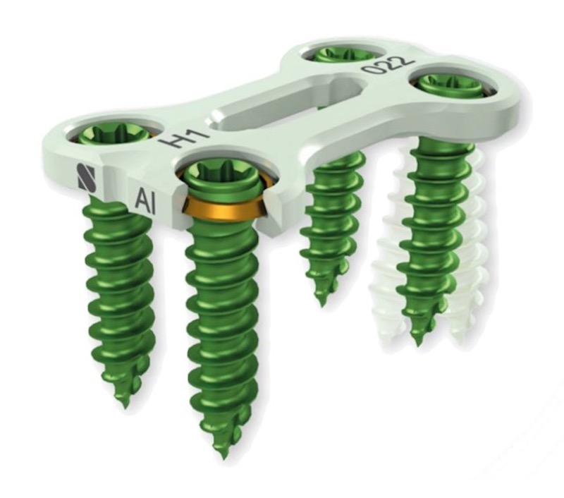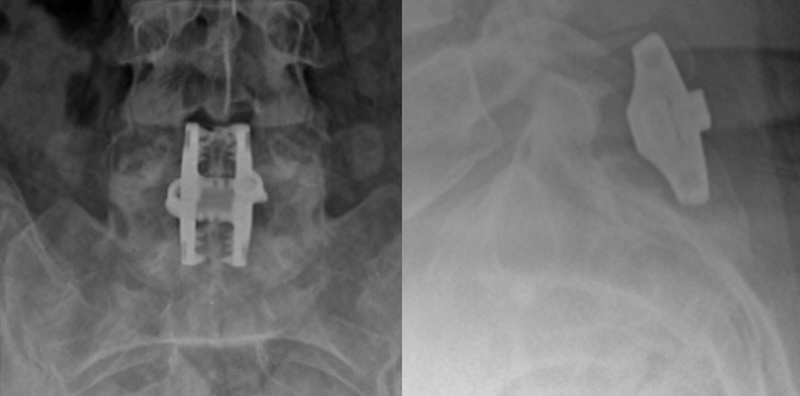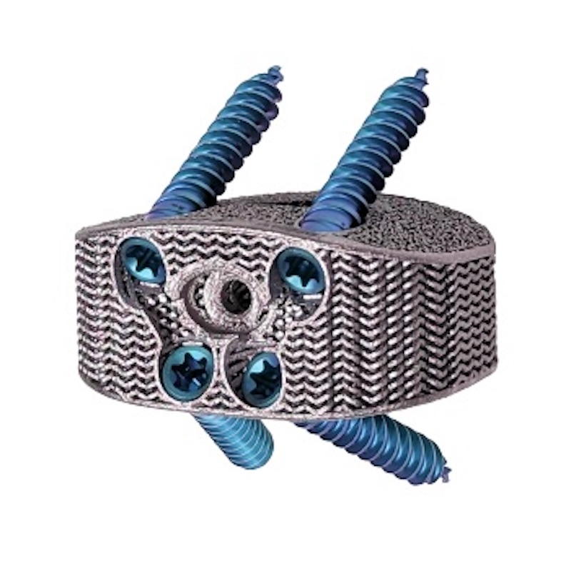 The Inspan Spinous Process Plate System by NANISX (Company of KIC Ventrures) is an interspinous process stabilization clamp composed of titanium with a contour that allows it to fit snugly up against the lamina. It features two interconnected plates that compress together against the spinous process to produce stabilization across the two vertebrae.